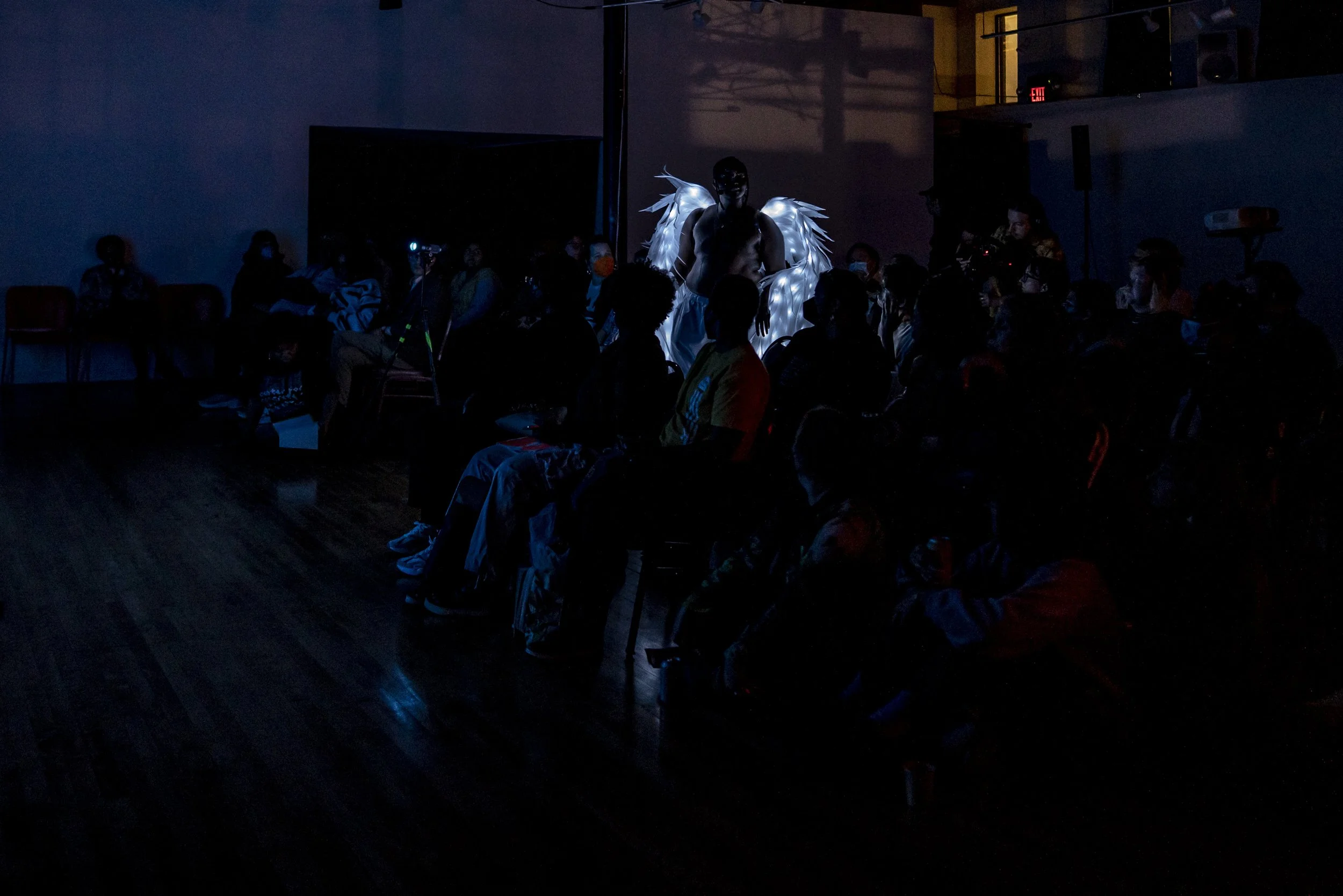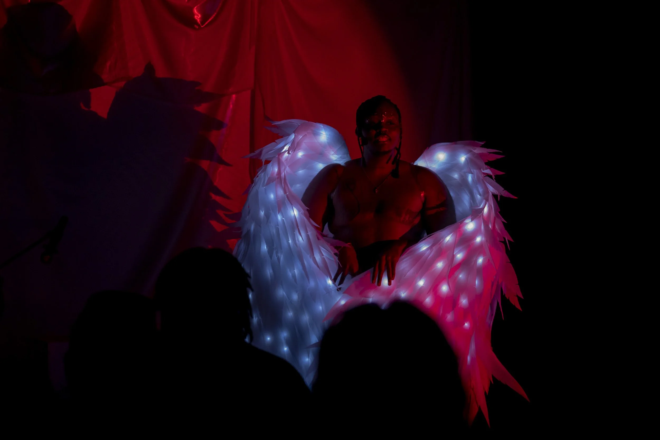 Sky Fulla Angels is a re/naming ritual and reckoning that explores the connections between queer renaming, colonial renaming, and Black naming practices. Using storytelling, poetry, soundscapes, Kora music, projections and more, Amari will lead us all through an experience that will allow you to re/name yourself and the worlds you inhabit, so that you may see yourself and others for who they truly are.