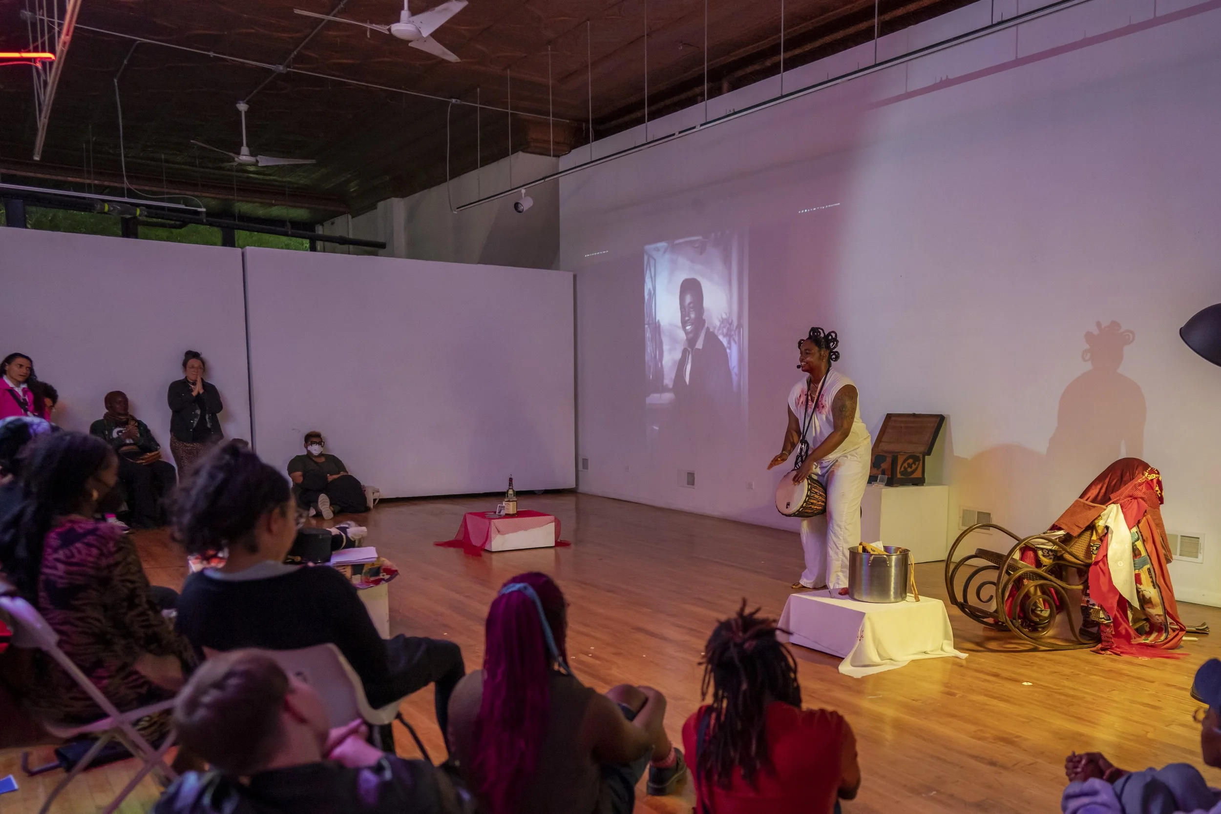 Where The Wiz and Zora's Mules and Men meet, Altar of the Afrotransfuture, is an invitation to an Afrofuture where Black trans folks are at the center of a magical, reimagined world. Inspired by Black American Folklore, the audience will be guided through non-linear time to partake in the makings of an Afrotransfuture full of queer folklore, ancestral embodiment, poetry, soundscapes, and storytelling that will beckon you home. The makings of this future requires revisiting the past and excavating all that we've known to be true about Black gender oppression and expression. Won't you join us here - a future where we can live, and live fully?